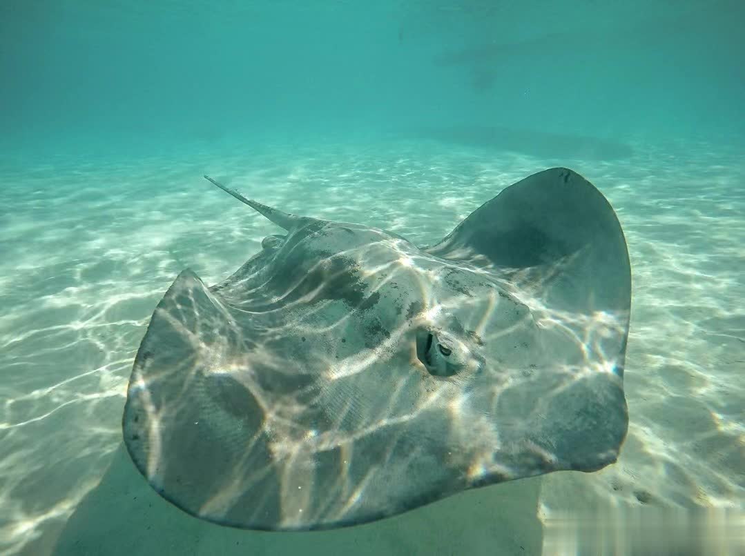 五、巨型黄貂鱼巨型淡水黄貂鱼是一种大型淡水鱼类,属于鲤形目鲤科,也被称为巨型黄貂鱼、巨型白貂鱼或巨型河貂,主要分布在东南亚的湄公河、红河和澜沧江等流域,喜欢栖息在缓慢流动或静水的湖泊、河流和洪水平原。巨型淡水黄貂鱼以巨大的体型而闻名,成年个体可达3-4米,体重可达200公斤以上。它们的身体呈长而扁平的形状,背部呈青灰色或银灰色,腹部呈黄色,具有窄长的嘴和细小的鳞片,尾鳍宽大且分叉,有助于它们在水中的灵活游动。