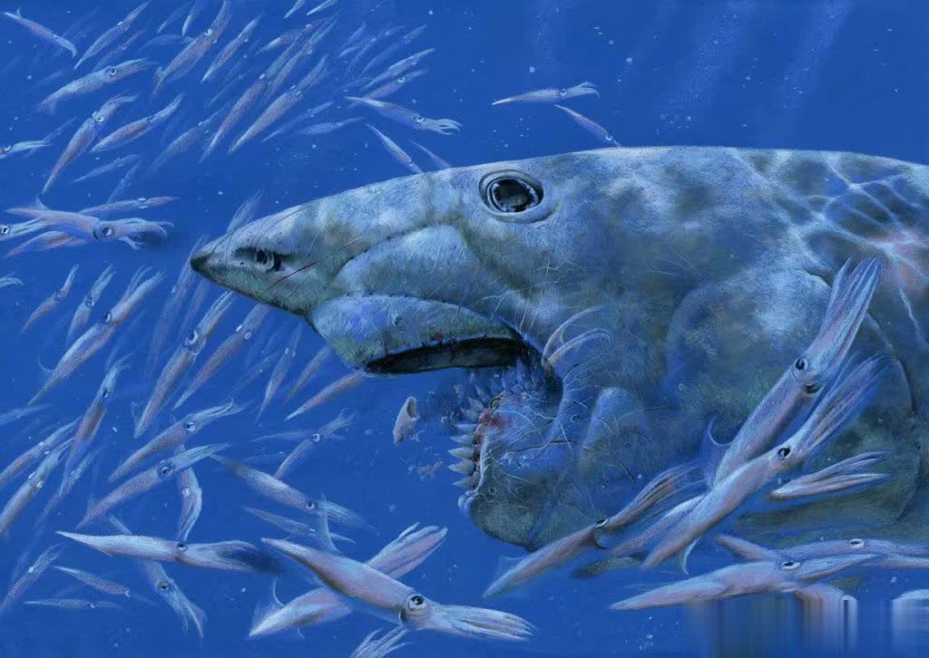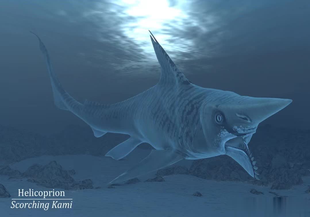 十、太陆鲨太陆鲨是一种生活在早二叠纪至中二叠纪深海中的肉食性动物,太陆鲨的外貌确实非常奇特,它的下颚拥有一个螺旋状的牙齿结构,约有180多颗牙齿,看起来像是一个畸形牙齿怪物。太陆鲨的牙齿具有连续生长的特征,新的牙齿会不断从后方生长,并顺着螺旋状结构推进,同时老牙齿不脱落,继续保留在口腔内部。这样的特殊牙齿结构使得太陆鲨在捕食和咀嚼猎物时具有一定的优势。